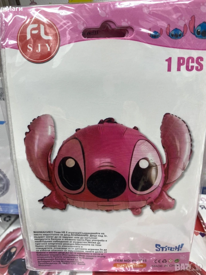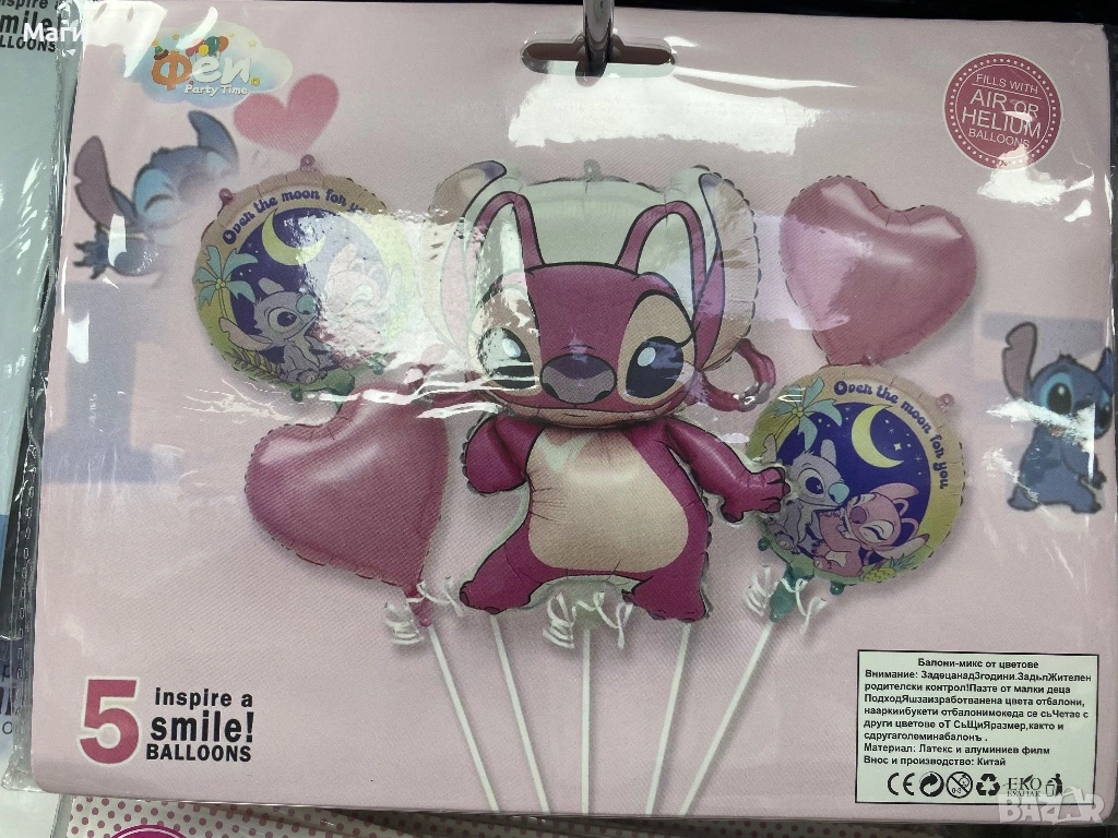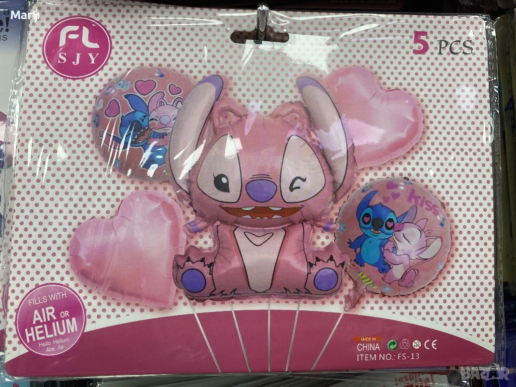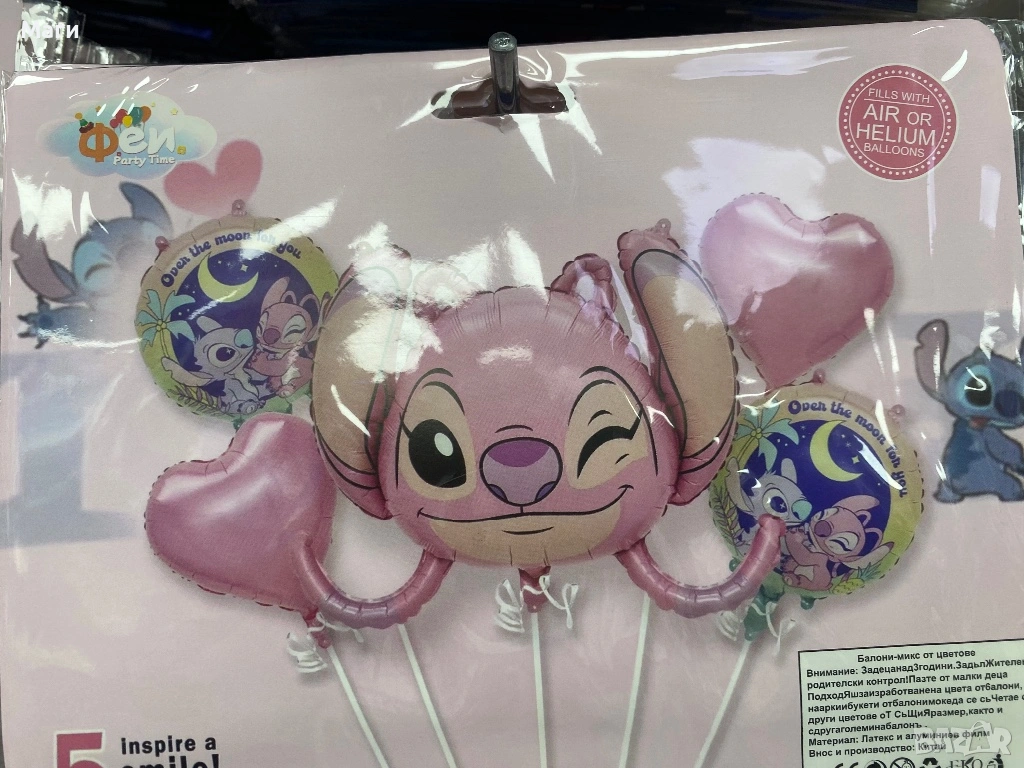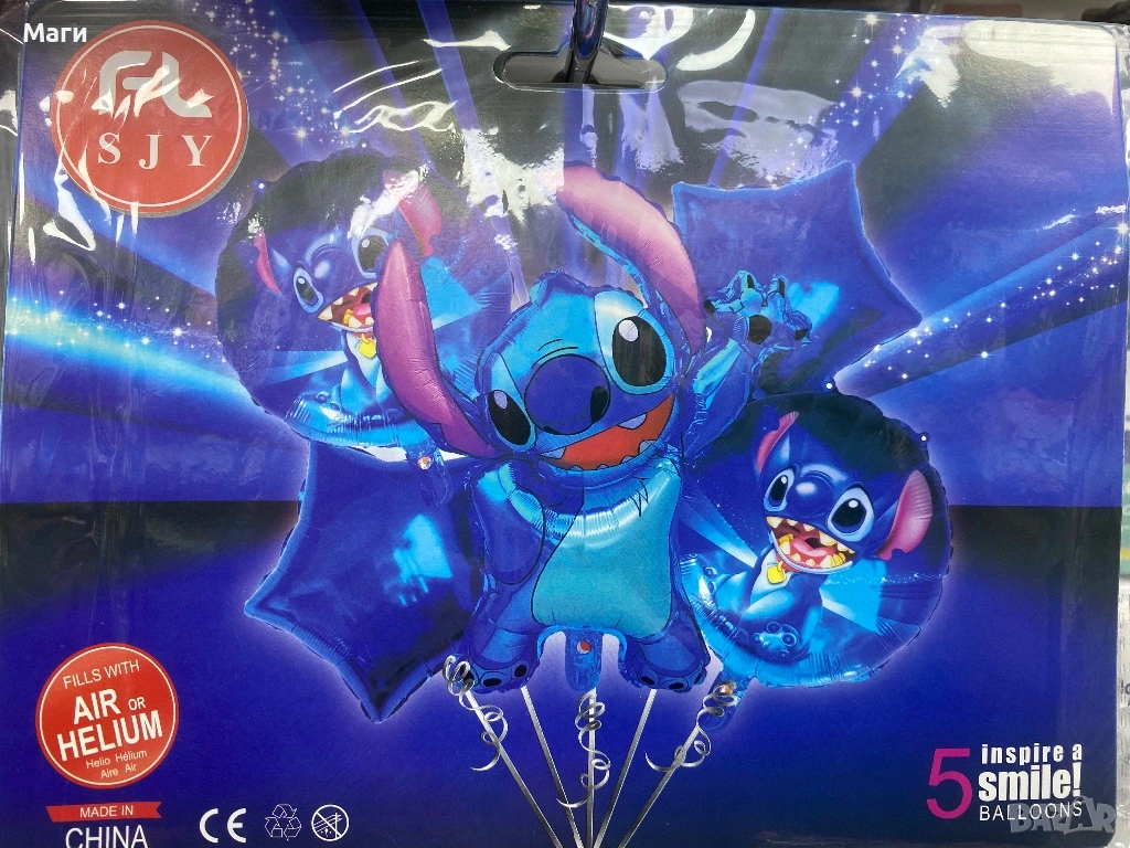 Фолиеви балони с фигурката на СТИЧ, балони комплект от 5 броя, както и балони със сцени от филма. Подходящи за украса и декорация.