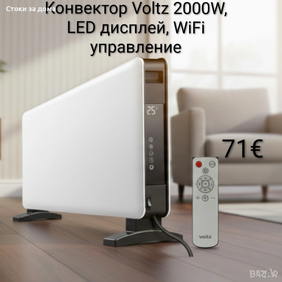 Конвектор Voltz – 2000W, LED дисплей, WiFi управление през TUYA Smart App