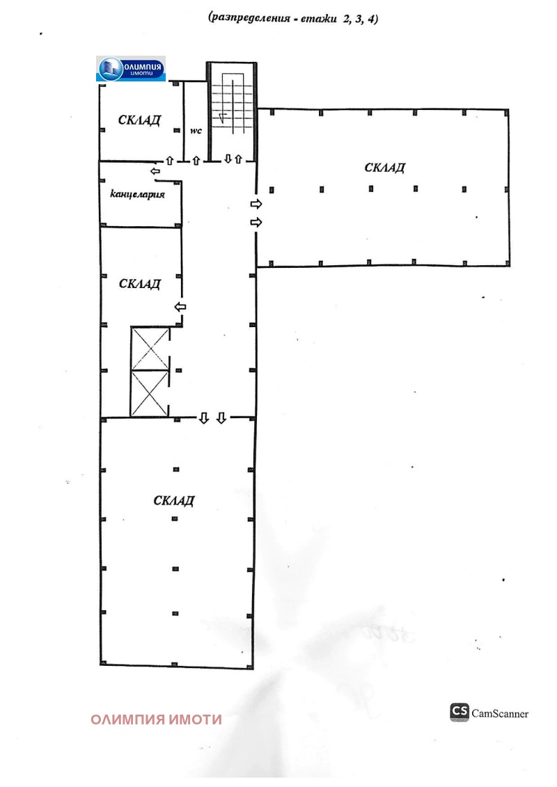Отдават се три етажа / ет.1, ет.2, ет.3 / и партер , от масивна сграда с рампа за товароразтоварна дейност. Етажите са с обща площ от 1860кв.м и височина 3м.Партера е с площ от 290кв.м на който са разположени стълбище и два асансьора. Помещенията на етажите са еднотипни, светли и се състоят от широк коридор с подход към едно голямо помещение с площ от 194кв.м, второ помещение с площ от 204 кв.м, един склад, два офиса и санитарен възел. Първи етаж е с ПВС дограма ,топлоизолация и добре направени офис и санитарен възел. Сградата разполага с два големи товарни асансьора /2м-2м/ с товароподемност от 1000кг. Напълно отремонтиран покрив . На разположение е голям терен за маневра на автомобили и товаро-разтоварна дейност. Цената е без ДДС.Ключ в агенцията.