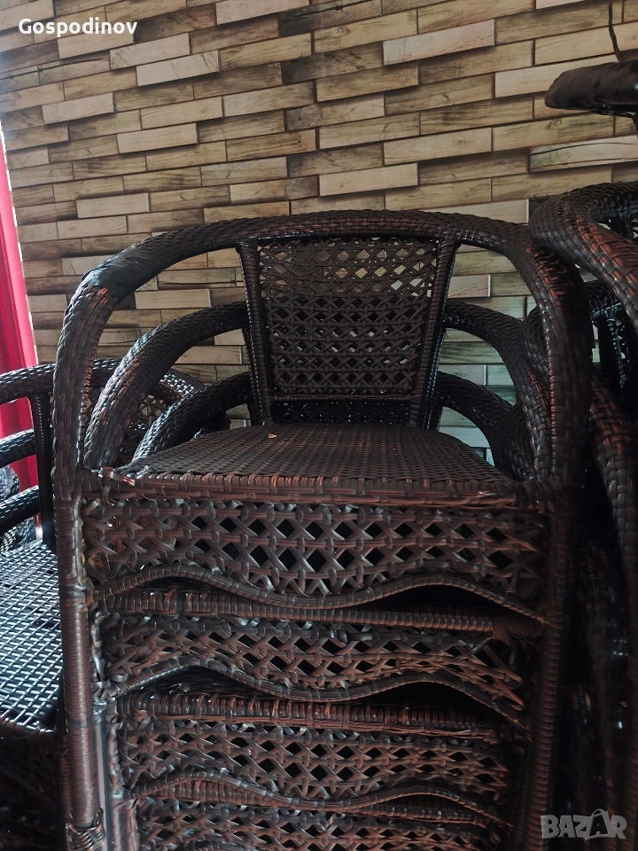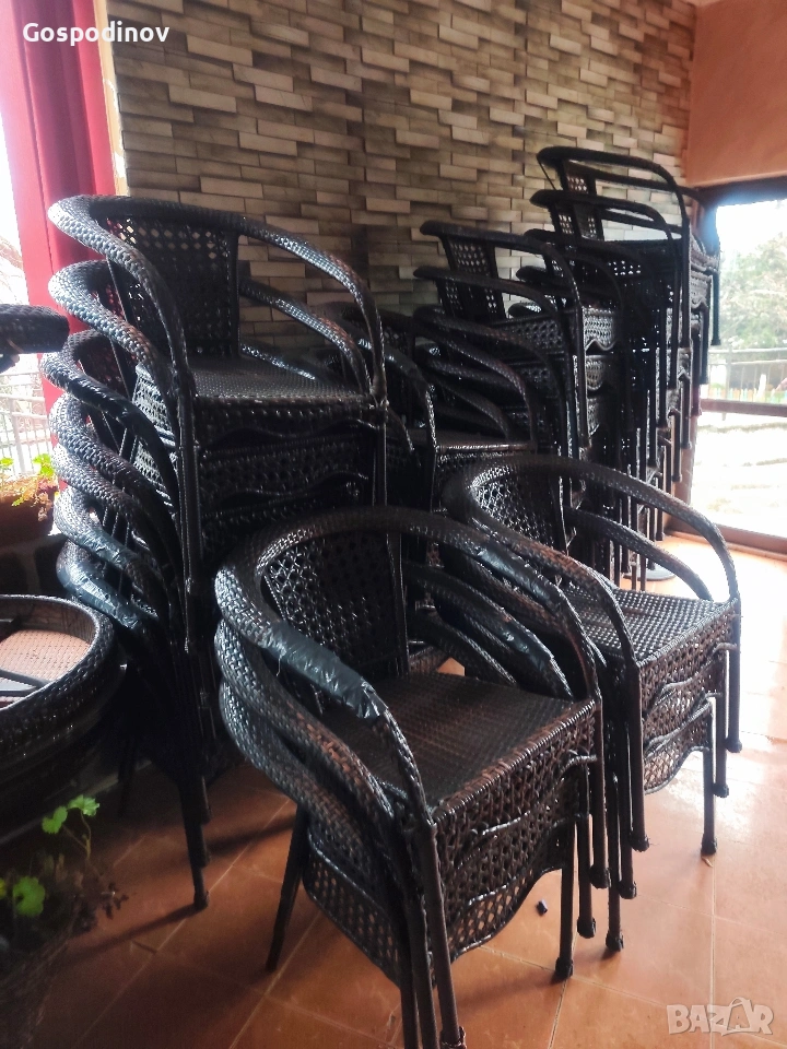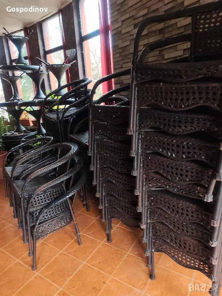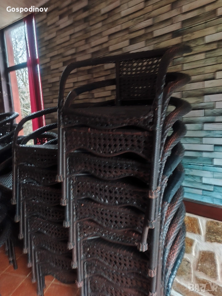 Продават се градински столове , подходящи за кафене , ресторант , заведение или просто за градината на двора ! Цената е символична по 10 евро на брой, понеже имат следи от употреба повечето , а някои са леко с леко разплетен ратан..
