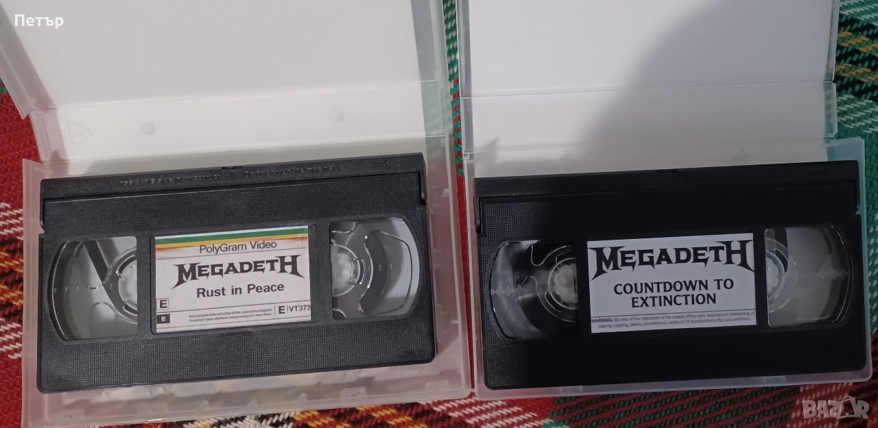 За любителите на качественият траш и фенове на аналоговата епоха (към които принадлежа и аз), предлагам 7бр. Видео касети на мега яката банда Megadeth. Четири от касетите са чисто нови. Чист образ и качествен HiFi stereo звук. Лично аз много се кефя на звученето именно от видео касета.
