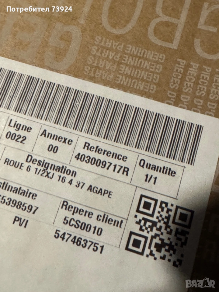 Джантата е права има една драскотина видна на снимките .цената е съобразена с това и подлежи на лек коментар.на снимката има номера по рено- 403009717R