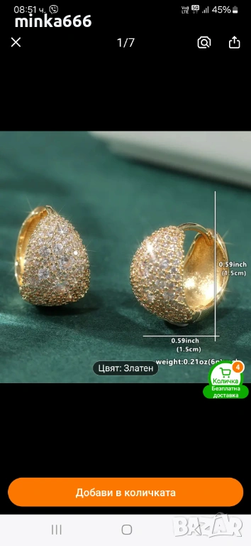 Обеци с вградени цирконий блестящи → Обява 53299992