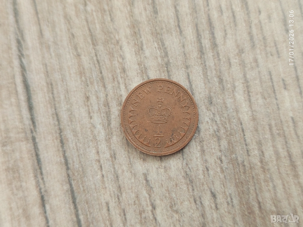 Монета 1977 Великобритания 1/2 New Penny (Elizabeth II - 2nd portrait) → Обява 53300219