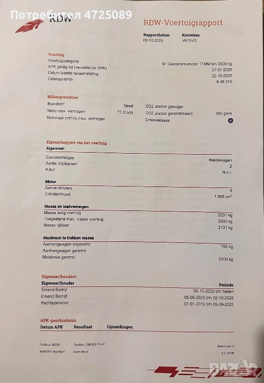 Буса е докаран от Холандия на ход 2400км. Безупречна работа на мотор и скоростна кутия.