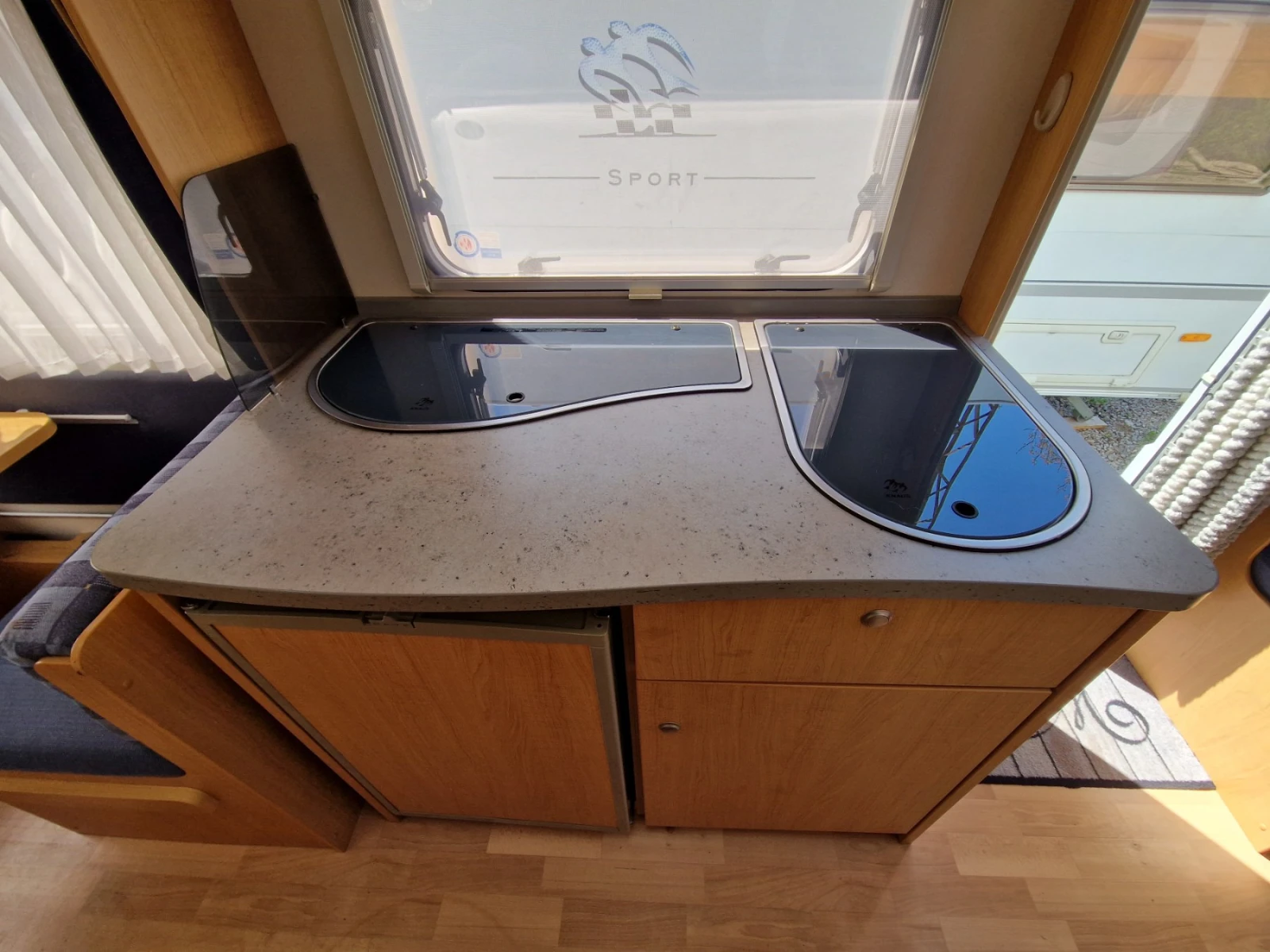 Караваната е нов внос от Швейцария и е в отлично състояние както отвън така и отвътре. Разполага с 6 спални места, кухненски бокс състоящ се от хладилник с камера работещ на 12V/220V/газ, 3 газови котлона, мивка и много шкафове за съхранение. Баня с вградена химическа тоалетна, под душово корито и мивка. Също така разполага с голям резервоар за вода, бойлер, отоплителна печка с обдухване на цялата каравана работеща на газ, ролетни щори и комарници на всички прозорци и люкове, телевизор, маркиза и др.
