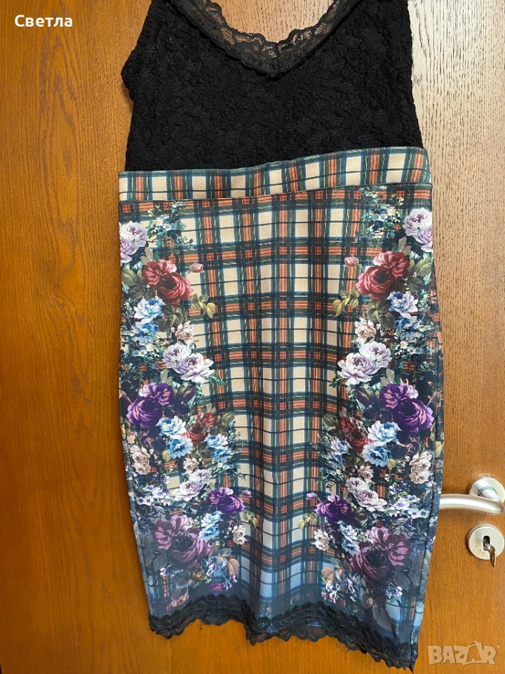 Рокля на зара, надолу тип неопрен, стягаща и разтегателна, нагоре дантела.