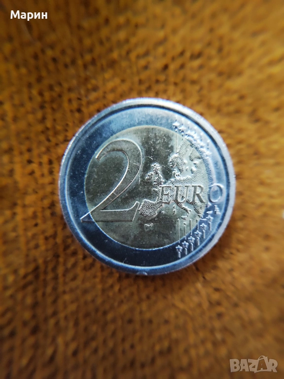Външният пръстен на монетата изобразява дванадесетте звезди на знамето на Европейския съюз.