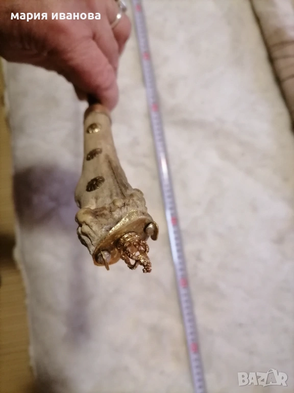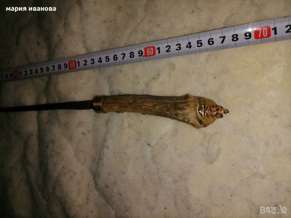 Старо ковано острие шиш шпага с дръжка от рог с тайник и корона → Обява 53301078