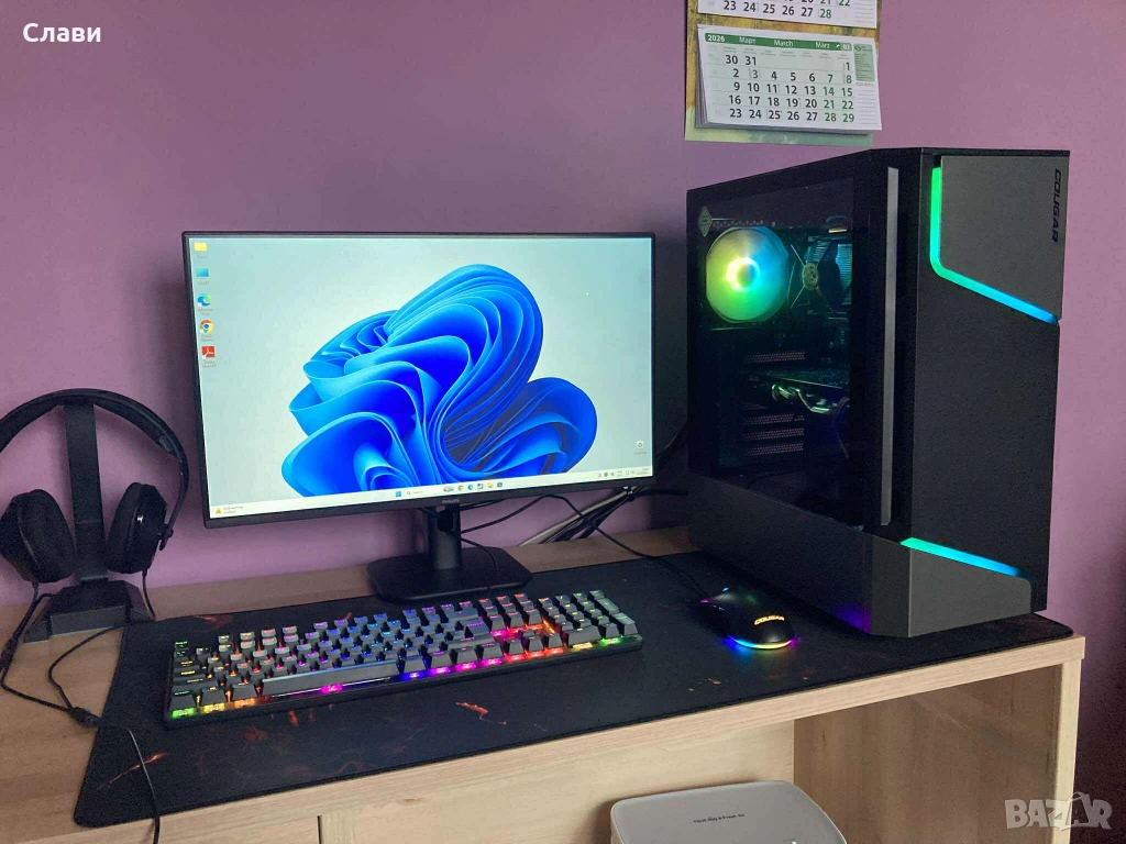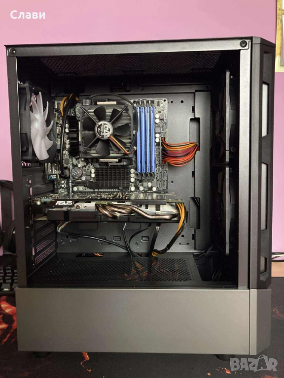 компютър. Много красив, мощен, тих и изчистен билд, с добър въздушен поток. Компютъра е подходящ за игри на Full HD, работа и обучение. Идеален за игри, като Fortnite, Counter srike 2, CS GO, GTA V, PUBG, Valorant, League of legends, Apex legends, Need for speed и др. Компютъра е в отлично състояние, без забележки. Преинсталиран, профилактиран и готов за употреба (Сменена термоконтактна паста на процесора и видеокартата - Arctic MX4).