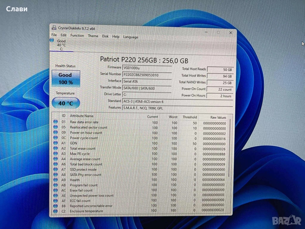 SSD: PATRIOT P210, 256 GB /ново с 3 години гаранция/;