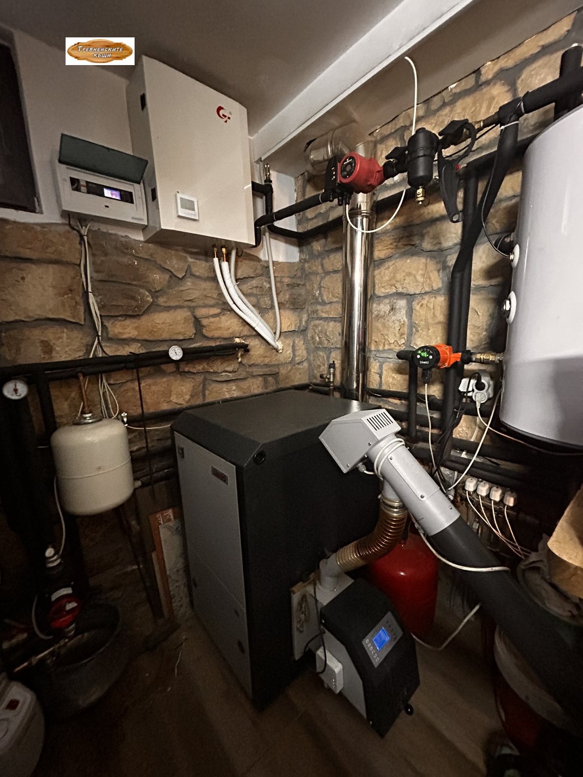 Строителство и ремонт: Каменни основи, цялостна външна изолация от 10 см, изолация с каменна вата на покрива, бетонна плоча между етажите. Нова висококачествена дограма и отоплителни системи - подово отопление и котел на пелети. Водоснабдяване от централен водопровод с резервоар и хидрофор, 200л бойлер свързан с парното, слънчеви панели на покрива.
