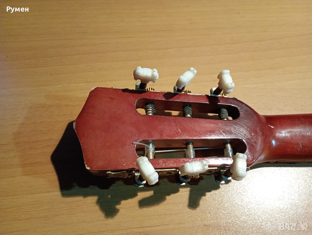 Китарата е с всичките си шест струни. И шесте са силиконови.