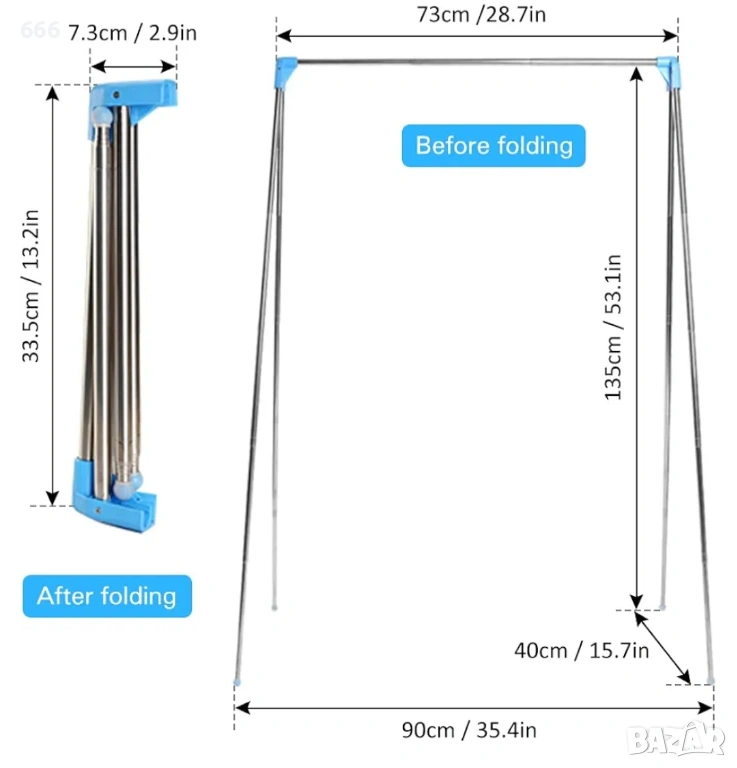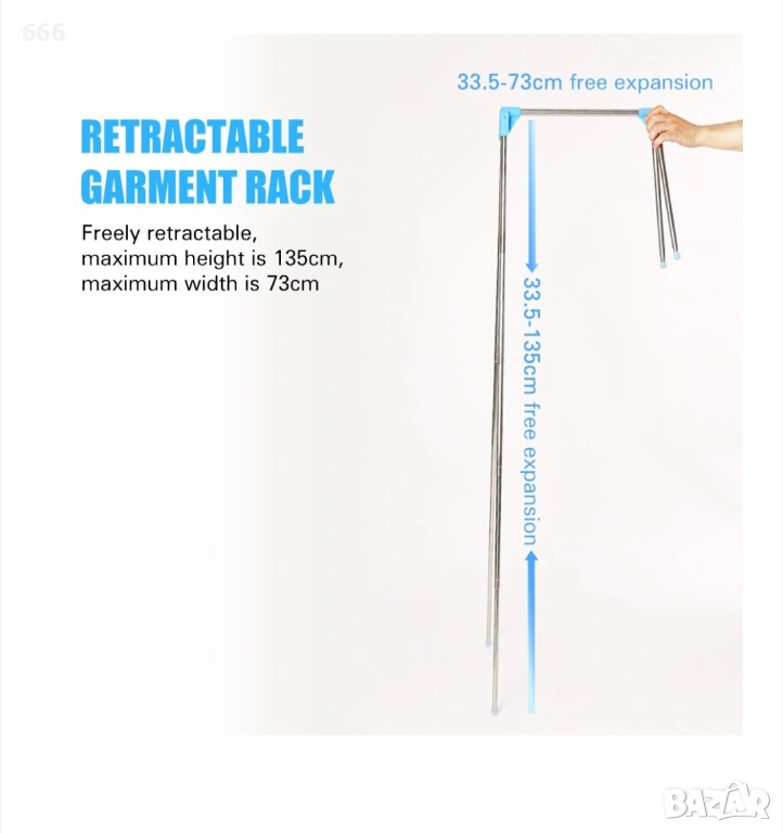 🌸СГЪВАЕМА И ПРИБИРАЩА СЕ: Тази сгъваема стойка за дрехи може да се прибира свободно, с максимална височина 135 см (53,1 инча) и максимална ширина 73 см (28,7 инча).