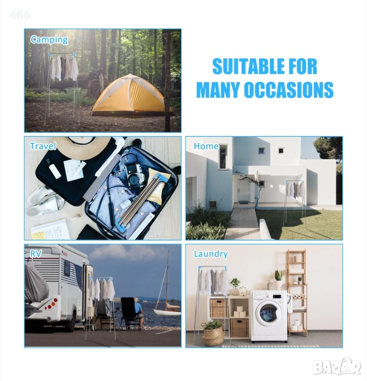 🌸МАТЕРИАЛ С ВИСОКОКАЧЕСТВЕНО КАЧЕСТВО: Тази сгъваема стойка за дрехи е изработена от неръждаема стомана, която е здрава, водоустойчива и издръжлива. На дъното има четири износоустойчиви неплъзгащи се гумени ръкава, подходящи за много поводи у дома и на открито.