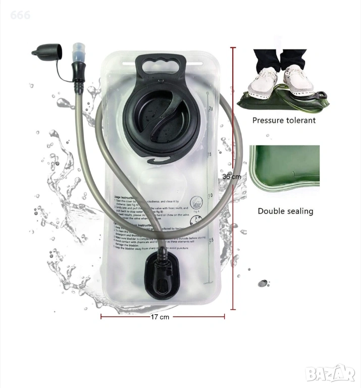 Висококачествен материал: Изработен от EVA материал, който е без вкус, без BPA и 100% хранителен, нашият хидратационен резервоар е преминал тест за налягане, за да се гарантира неговата херметичност. Техниката на двойно запечатване значително е подобрила издръжливостта при дългосрочна употреба.