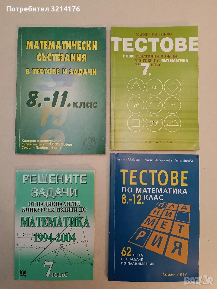 Тестове по математика за 8.-12. клас. 62 теста със задачи по планиметрия - Гинка Бизова, Румяна Маврова, Татяна Мерджанова 24,50€ (2007, Коала Прес)