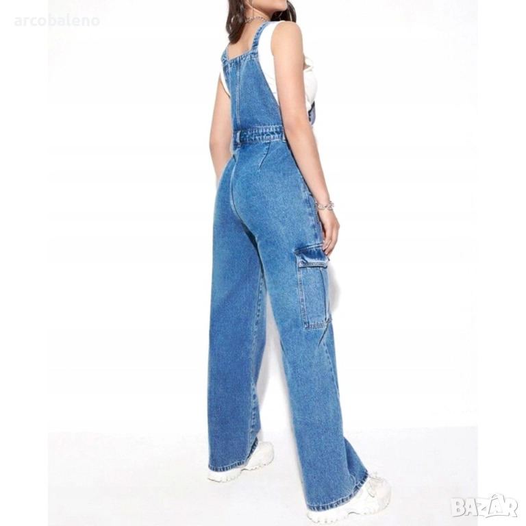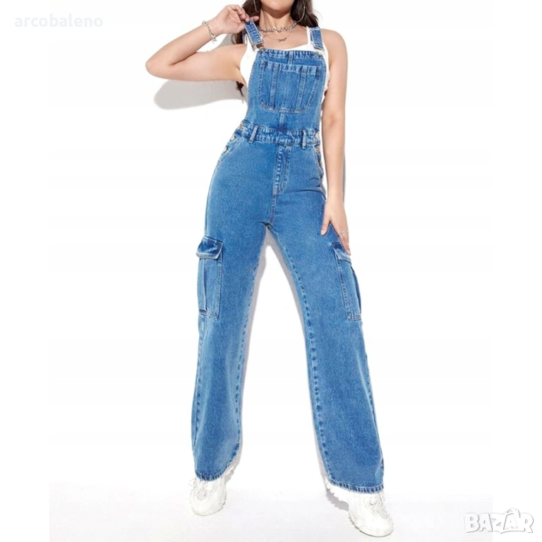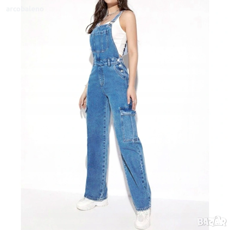Моден дамски дънков карго гащеризон. Идеален за предстоящата пролет. Идеален за токчета, боти на глезена, сандали и маратонки. Изработен от много качествен материал. Много модерен дизайн, много приятен на допир качествен материал. Те пасват много добре и са изключително удобни.