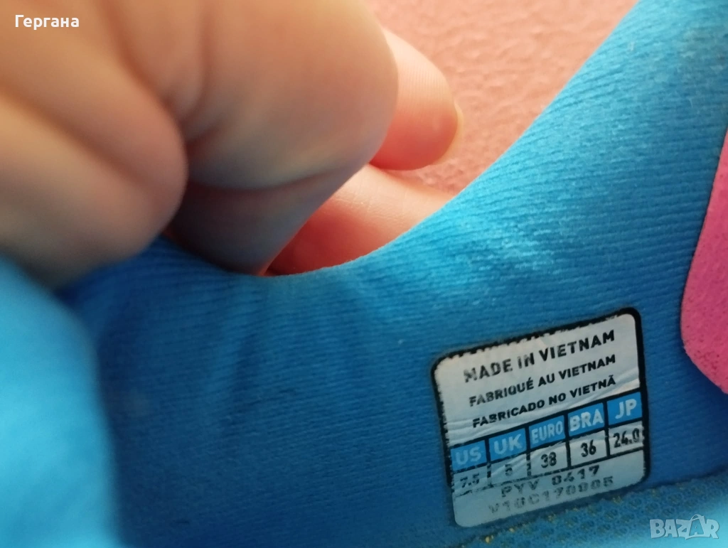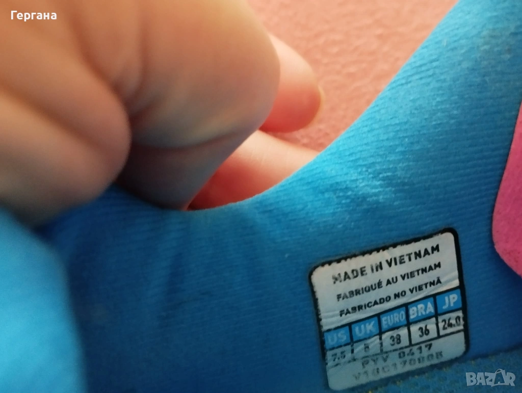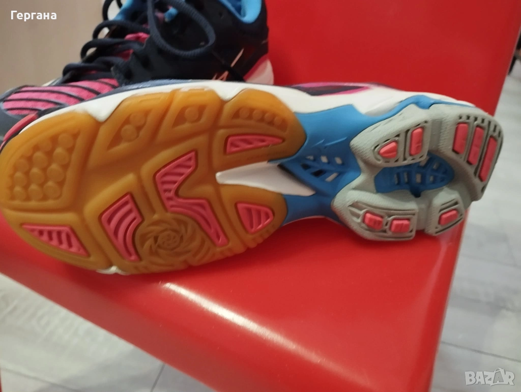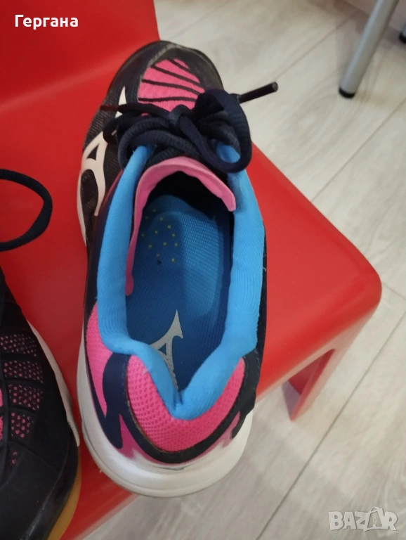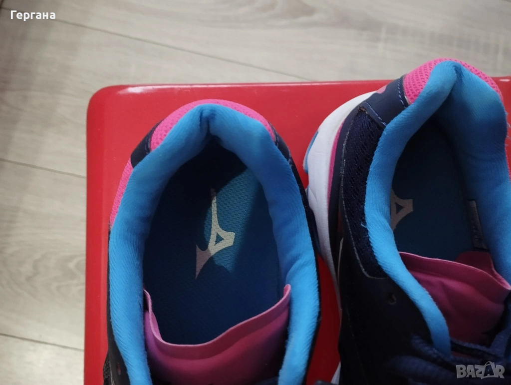 Маратонки Mizuno № 38, с дължина на стелката 24 см. Обувани са само за проба. Никога не са носени навън. Без каквито и да е забележки.