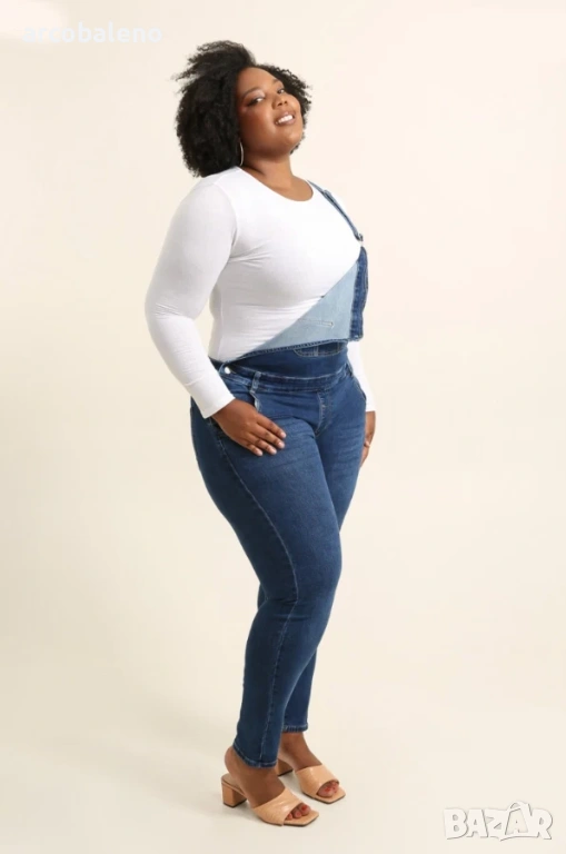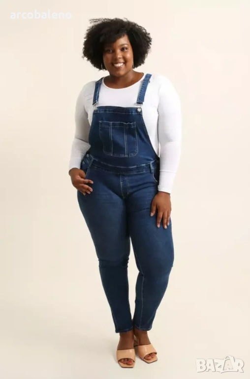 Моден дамски дънков гащеризон Plus size. Идеален за предстоящата пролет. Идеален за токчета, боти на глезена, сандали и маратонки. Изработен от много качествен материал. Много модерен дизайн, много приятен на допир качествен материал. Те пасват много добре и са изключително удобни.