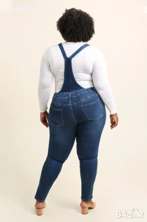 Моден дамски дънков гащеризон Plus size