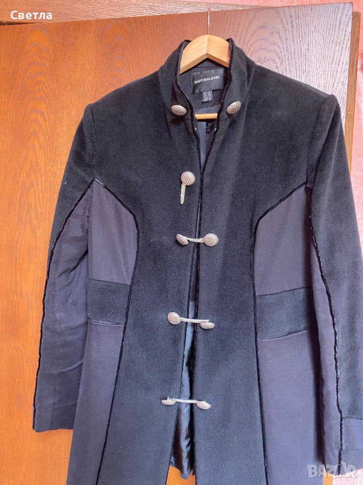 Две палта, едното елегантно жълто, второто черно на Бати Балено.