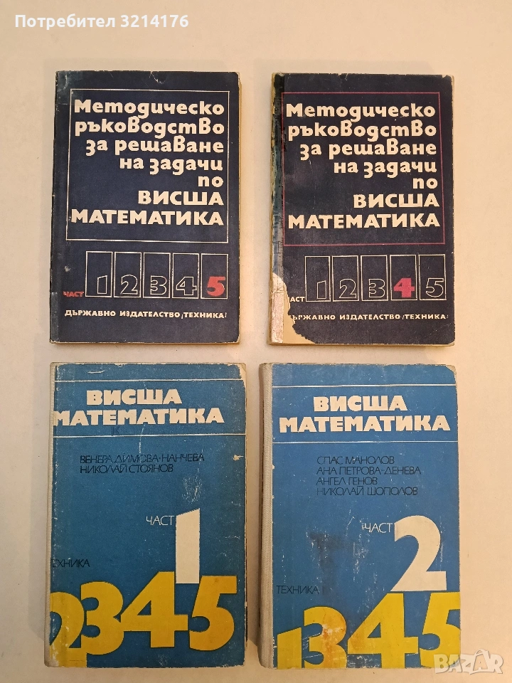 Методическо ръководство за решаване на задачи по висша математика. Част 4-5 - Венера Димова, Иван Михов, Александър Витанов, Васил Попов, Георги Караджов, Стефанка Тодорова 5€ (1975)