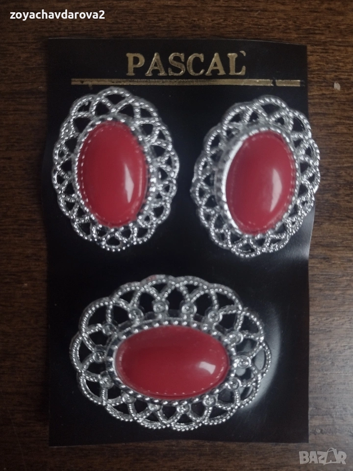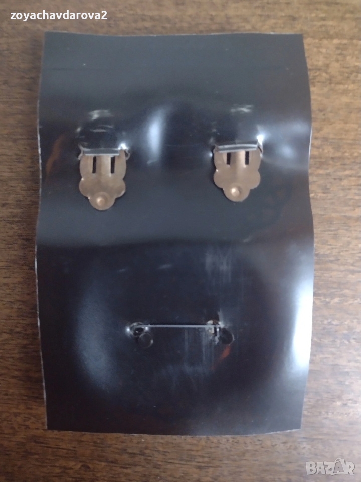 КОМПЛЕКТ ЧИФТ ОБЕЦИ (С КЛИПС) И БРОШКА. ЕЛИПСОВИДНА. ФОРМА. ВИСОЧИНА НА ОБЕЦИТЕ: 3 СМ., ШИРИНА: 2 СМ. БРОШКА: ВИСОЧИНА 3 СМ., ДЪЛЖИНА 3,5 СМ. НЕ СА БЪЛГАРСКИ.
