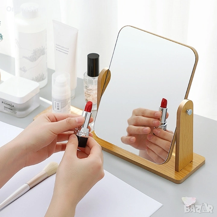Това елегантно дървено огледало за маса е идеалното допълнение към вашия дом или офис. Със своята компактна форма и стилен дизайн, то е подходящо както за гримиране, така и за ежедневна употреба. Изработено от висококачествени материали, това огледало гарантира дълготрайна издръжливост и удобство при употреба.