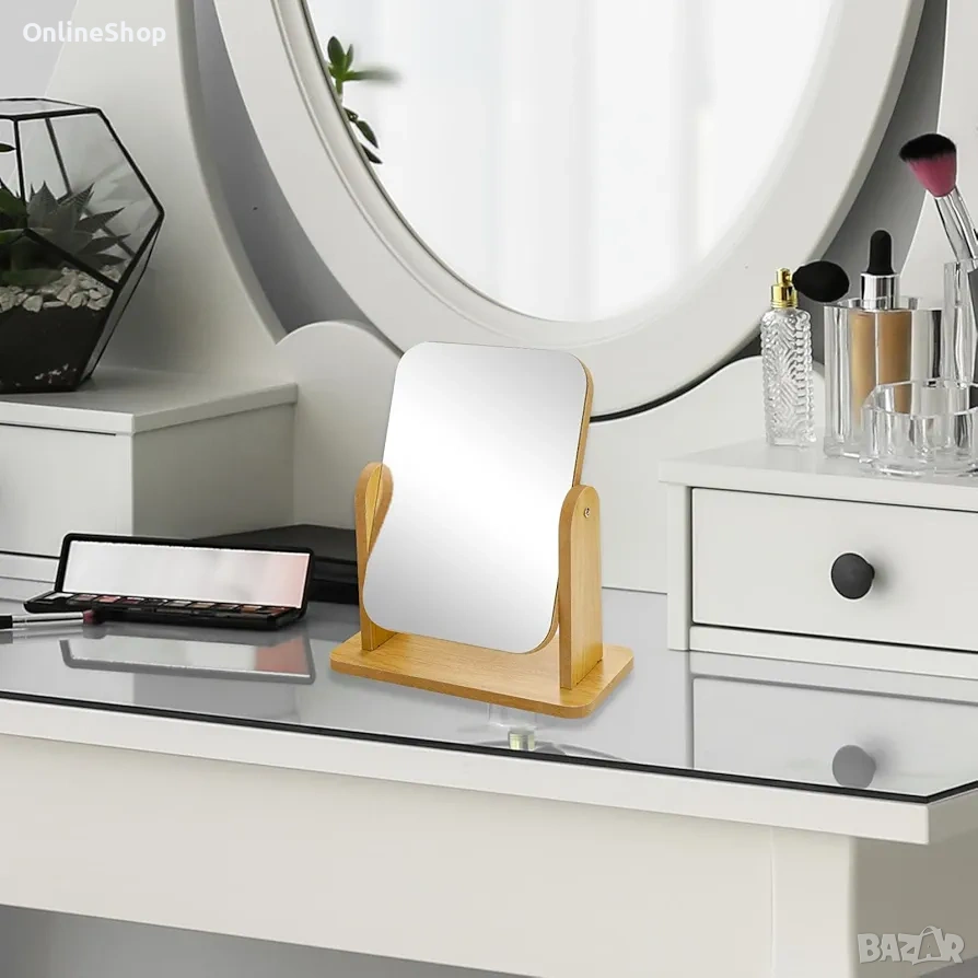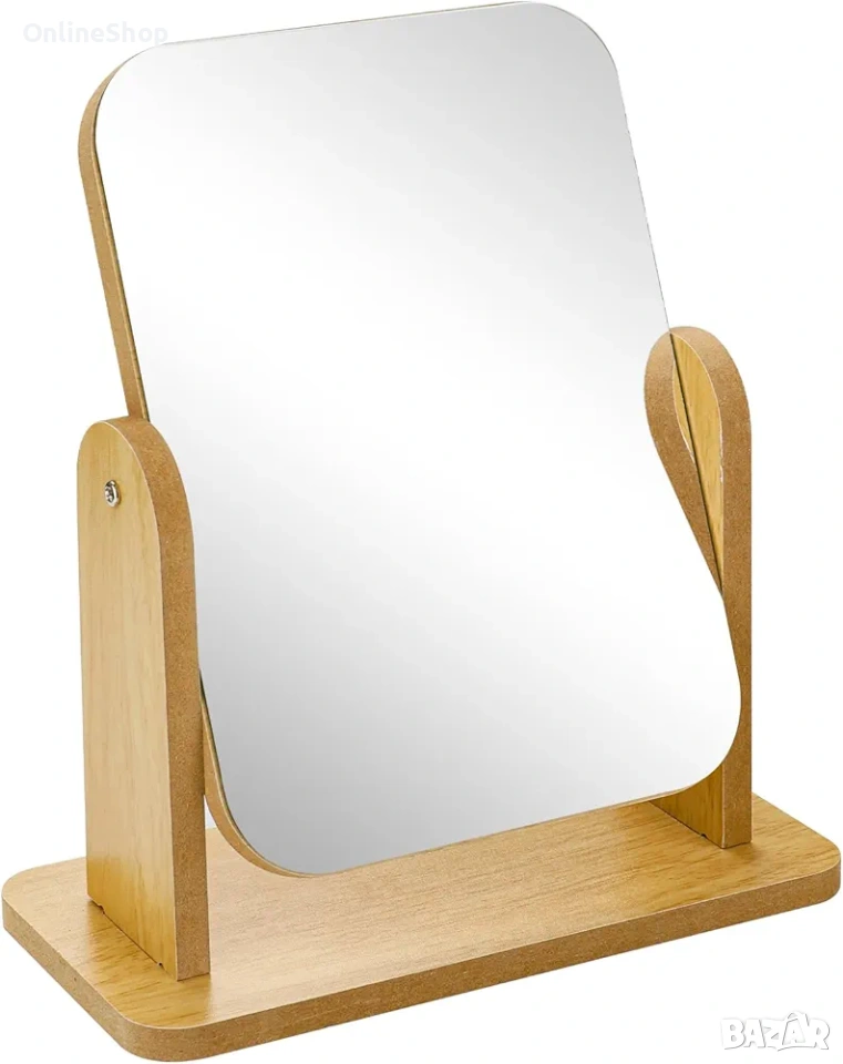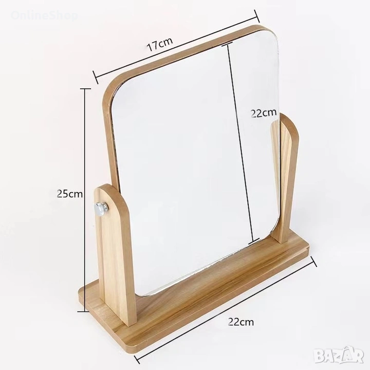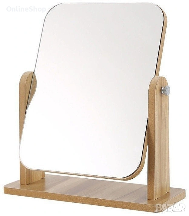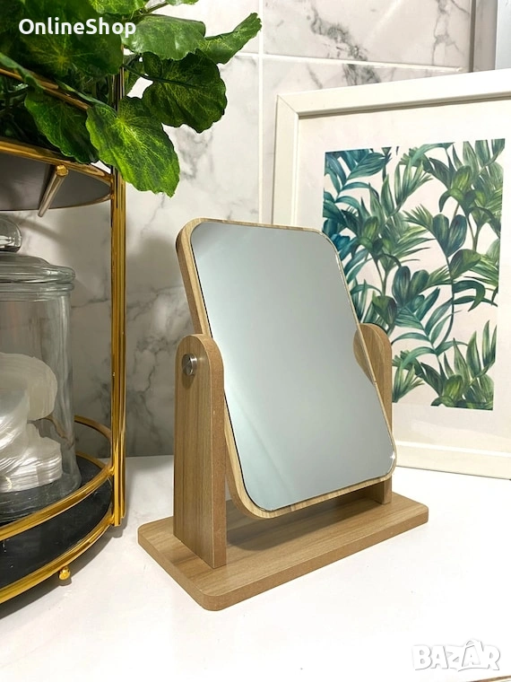 Огледалото е снабдено със стабилна дървена основа, която осигурява надеждност и устойчивост. Ъгълът на огледалната повърхност може да бъде регулиран според вашите предпочитания, за да постигнете най-добрия изглед. Освен това, компактният му размер го прави подходящо за всяко помещение, без да заема твърде много място.