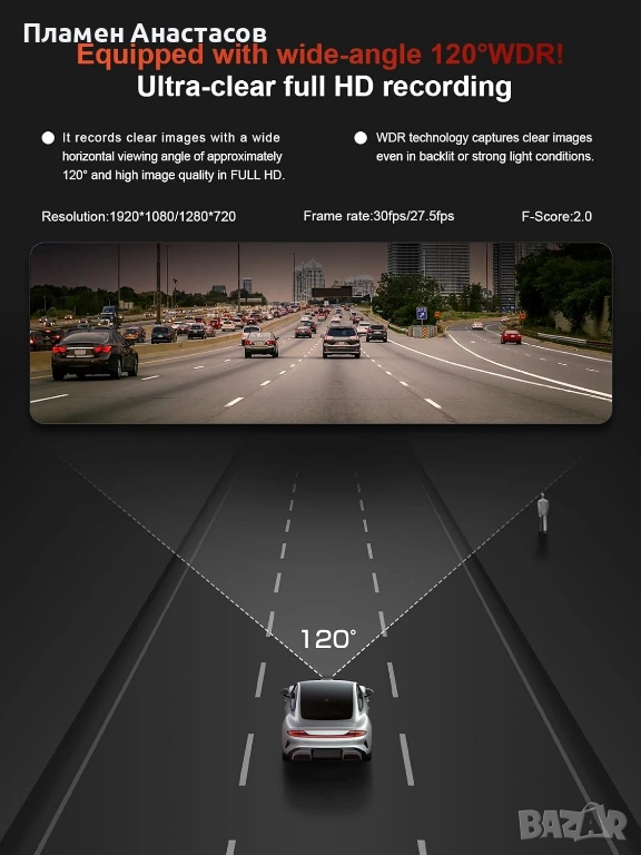 Видеорегистраторът записва висококачествено видео, използвайки ефективни алгоритми за компресия, и може да работи както през деня, така и при слаба светлина.