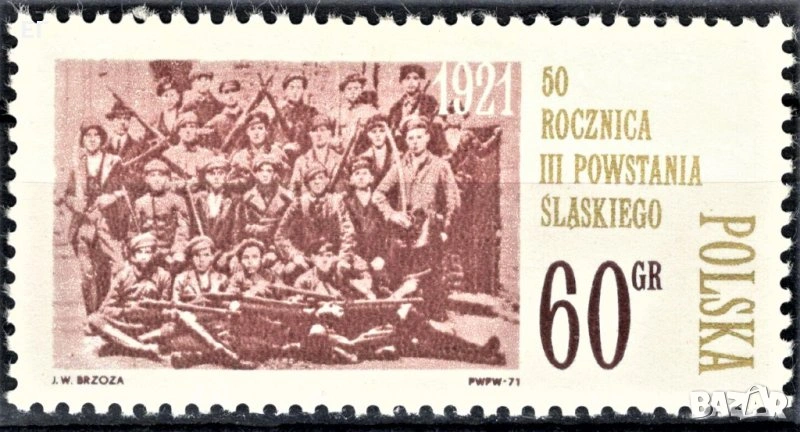 3. Самостоятелна марка, посветена на 50 години от третото Силезийско въстание. Каталожен номер по Михел 2078. Отлично състояние! Цена 0.25 €