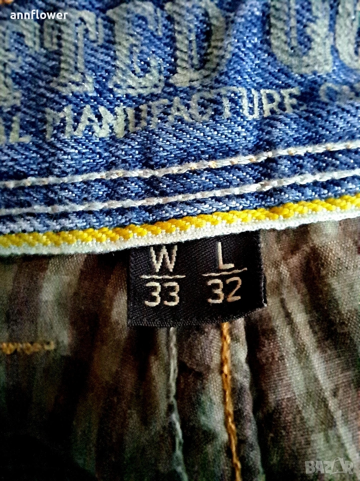 Дънките са като нови и оригинални. Материя 100%памук. Размер W33 L32. Дължина 107см ширина на колана едностранно измерен 42,5см, тоест талия 85см. ширина на крачола от горе на долу 33/22/21см.