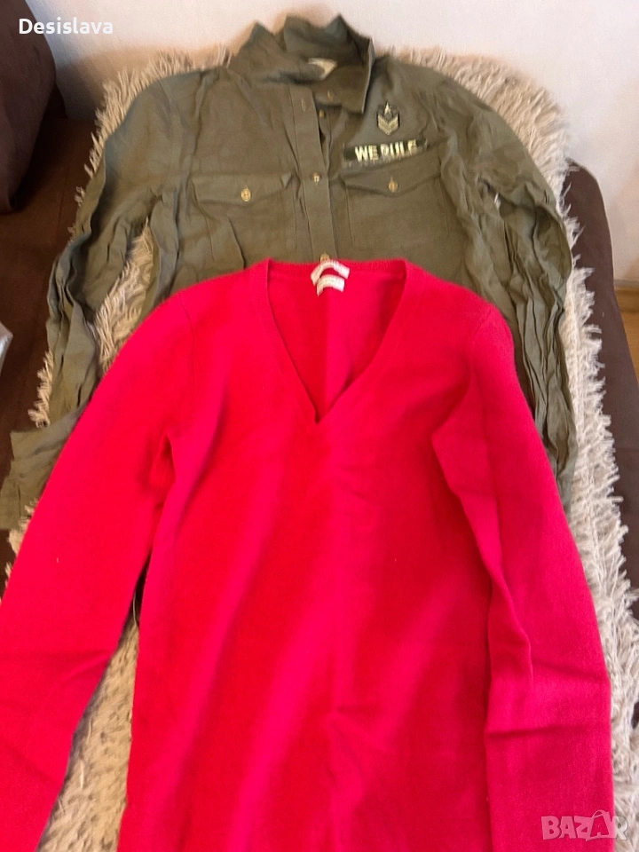 Лота се състои от - дънков гащиризон H&M, спортен клин от Декатлон, Суитчъри и 3 блузи с дълъг ръкав, пуловер на Бенетон и риза . Цената е за всичко.
