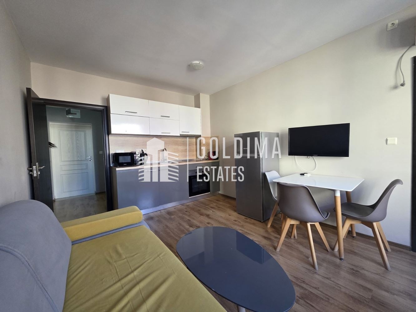 Състои се от просторна всекидневна с кухненски кът, спалня, баня с тоалетна и тераса. В отлично състояние, готов за нанасяне веднага!