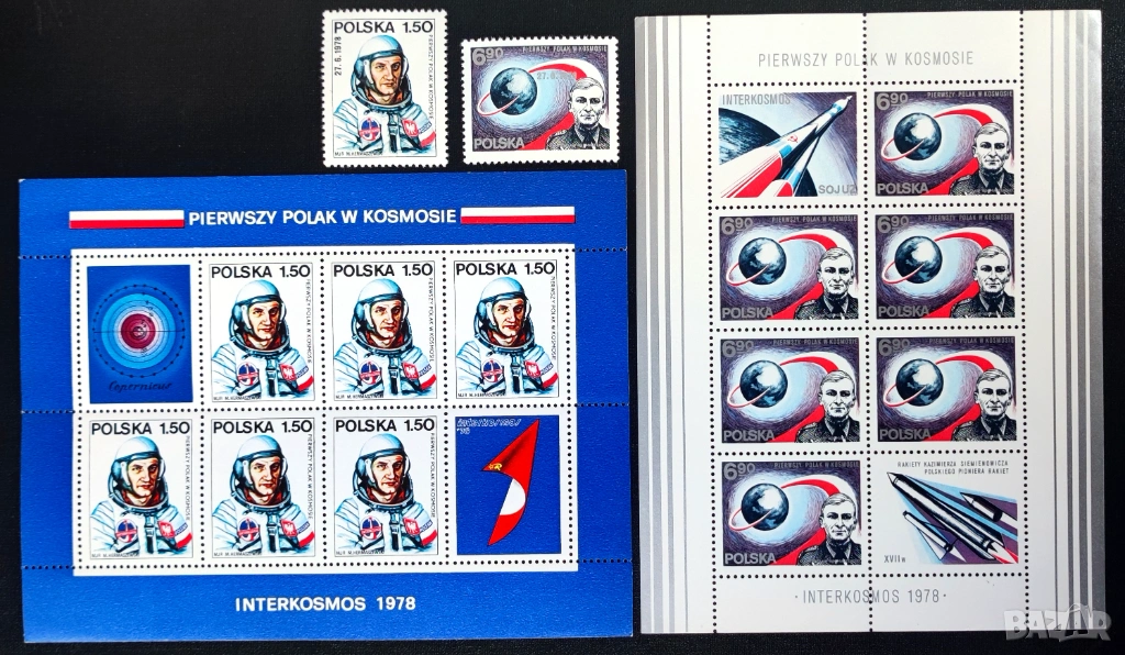 8. Интеркосмос. Първият полски космонавт Мирослав Хермажевски. №№ 2563-2564 и блокове №№ 70 и 71. Цена 13 €