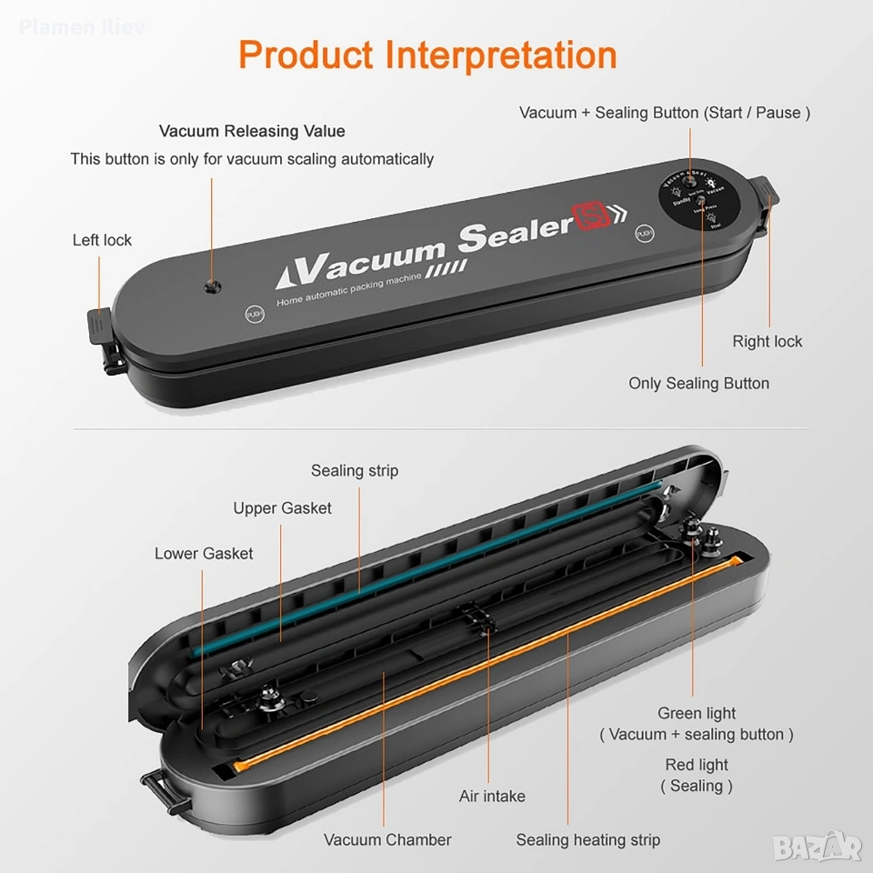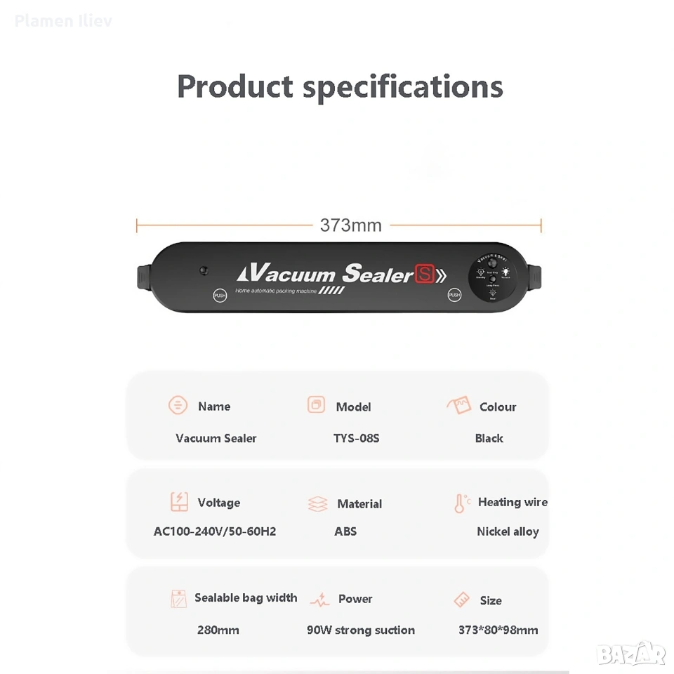 Машина за вакуумиране на опаковки TV159B. Страхотна, гъвкава машинка с която можете лесно да вакуумирате своите опаковки. Ако ви е омръзнало от развалящата се храна или трудното съхранение на всеки един продукт. А може би се чудите, как да ги разделите, тогава определено този продукт е за вас. Вакуумира месото, рибата, зеленчуците, бобовите храни за едно още по-добро съхранение на продуктите. Благодарние на уплътнителя който е изработен от висококачествена ABS пластмаса, с 2 в 1 двоен режим, го прави подходящ за сухи и влажни храни. С тази машинка това се случва много лесно, бързо и гъвкаво. Съхранете храната и продуктите си по най-добрия начин, използвайки това невероятно устройство. Широчина на торбичките: до 25см.
