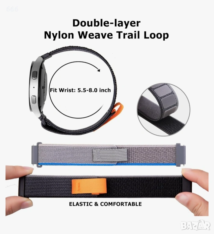 【Съвместими модели】Каишка за часовник Wingle Nylon, съвместима със Samsung Galaxy Watch 7 6 5 40mm 44mm/Galaxy Watch 5 Pro 45mm/Samsung Galaxy Watch 4 40mm 44mm/Galaxy Watch 4 Classic 46mm 42mm/Galaxy Watch Active 2 и др. ЗАБЕЛЕЖКА: Смарт часовниците НЕ СА включени, моля, потвърдете модела на часовника преди покупка.