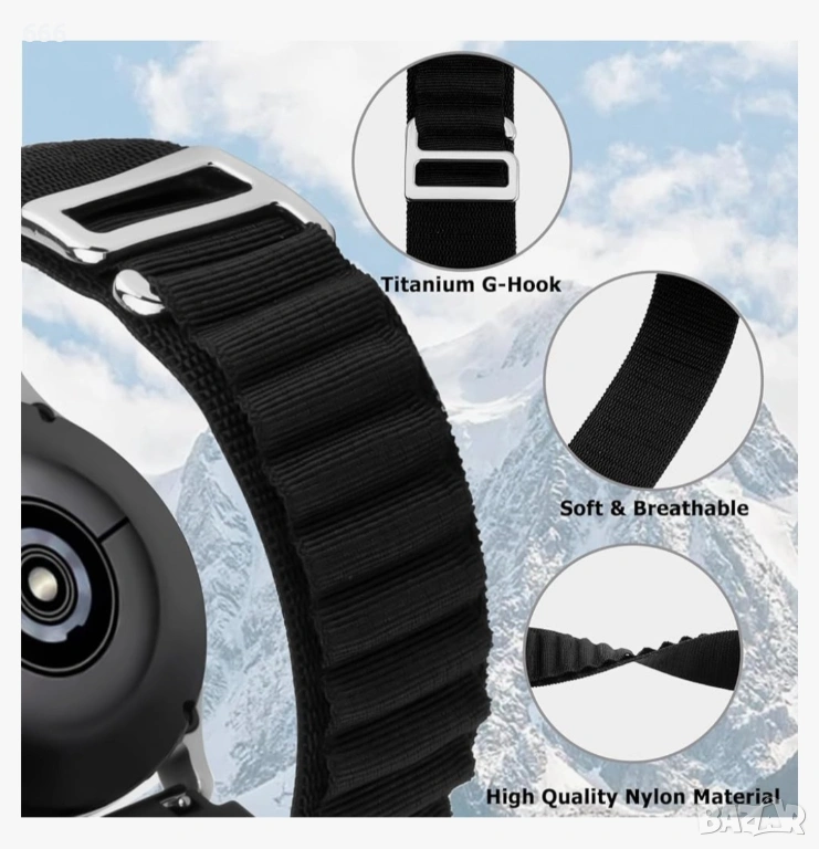 【Дишащ и издръжлив найлонов материал】Нашата алпийска каишка е безшевно съединена от двуслоен тъкан найлон. Естествено охлаждащият найлонов материал е мек, дишащ, щадящ кожата, лек, но издръжлив. Каишката Trail Loop е с титаниева G-образна кука, която се плъзга лесно в примките за сигурно прилягане. Лепящите ленти на обратната страна на алпийската каишка са здраво закрепени към каишката за сигурно прилягане, с удобно езиче за бързо издърпване.