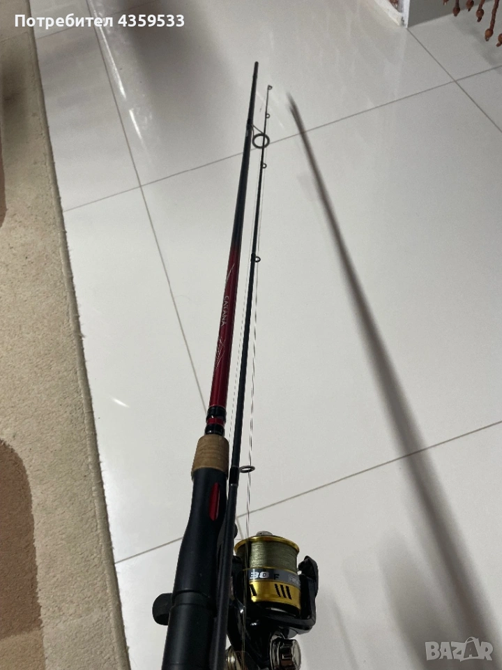 Продавам спининг въдица,shimano catana + макара filstar-2500.акцията на въдицата е 10-30 със увито влакно,въдицата и макарата са чисто нови буквално на един излет
