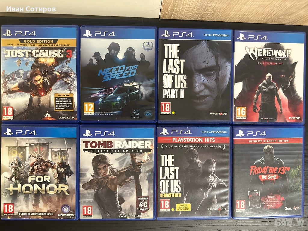 • Игри (8 оригинални диска): Включва хитове като The Last of Us Part II, Need for Speed, Tomb Raider, Just Cause 3 и други.