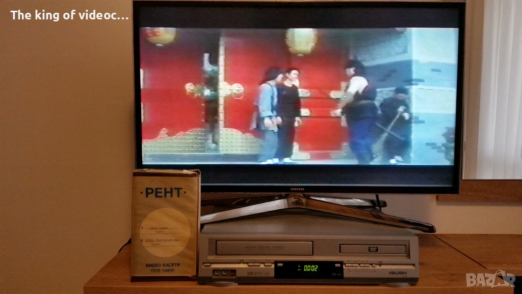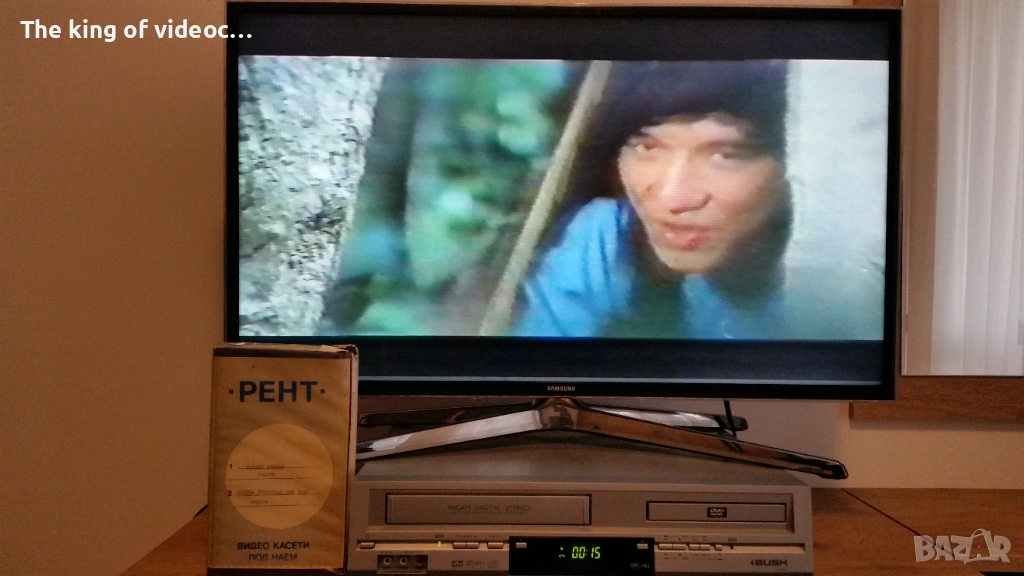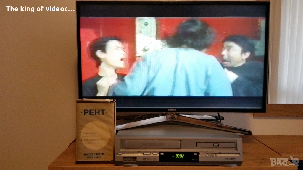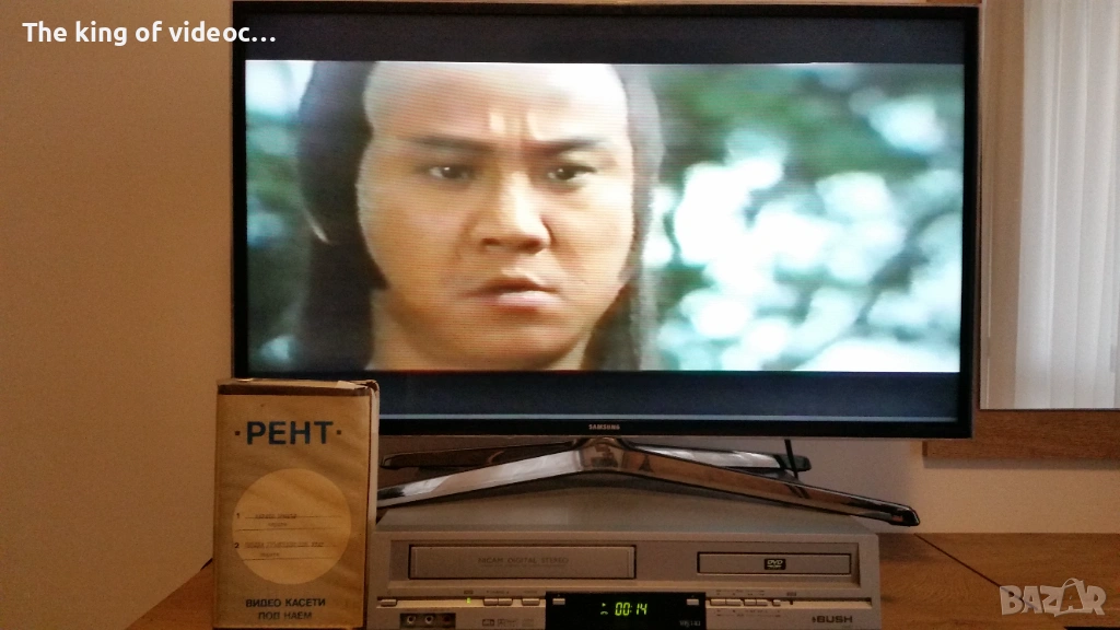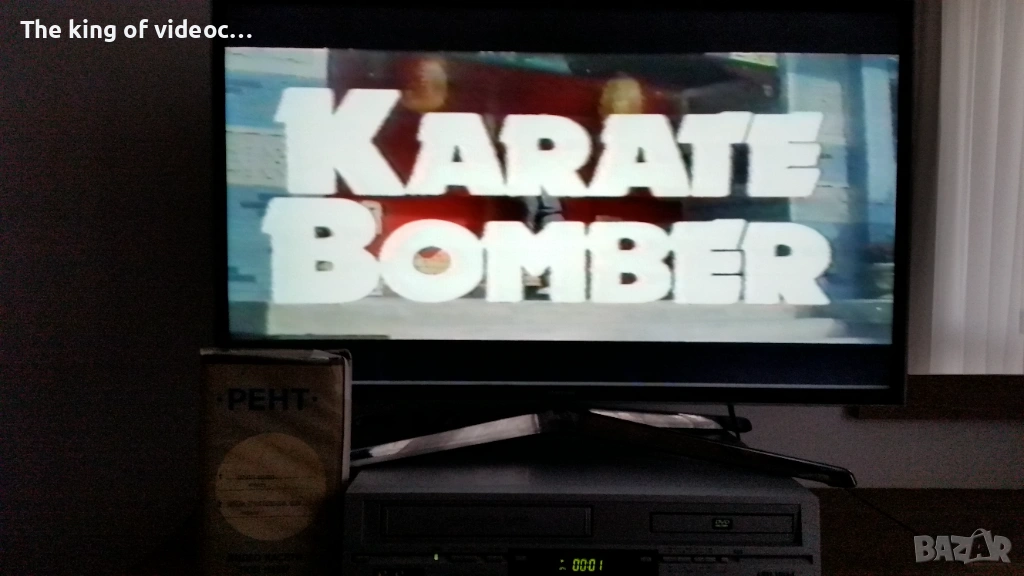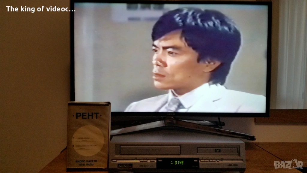 Продавам видеокасета с два филма "Карате Бомбър " с Джеки Чан от 70-те години и "Нинджа Гръмотевичния Удар " И двата филма са озвучени на български език от един мъжки глас . Касетата работи отлично . 18 снимки на обявата. 15 снимки на касетата в работещо състояние. Изпращам с Еконт или Спиди. Цена 8 евро .