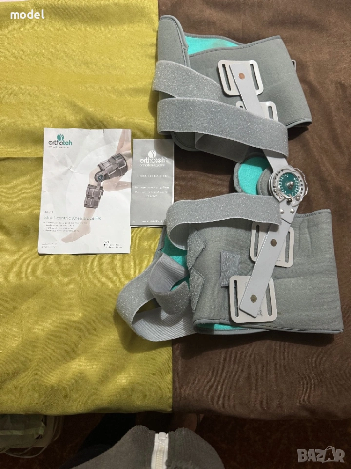 Ортеза за коляно с настройка на градуси на коляно.Фиксира се да предържа коляното при операция на смяна на колянна става,носена е само 20 дни и свърши перфектна работа!
