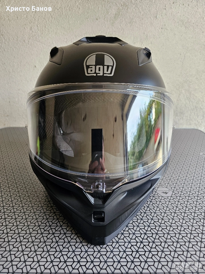 Каската е закупена юли 2025г., чисто нова, директно от сайта на AGV. Използвана е няколко пъти, но ми е голяма, като именно по тази причина се продава. Цветът е черен мат, а размерът е L (59-60). На каската има поставена интегрирана интерком система на AGV (разработена и произведена за тях от Cardo), оригинална за модела, която също е закупена чисто нова, директно от сайта на компанията. Визьорът е прозрачен, с поставен на него пинлок 120XLT.