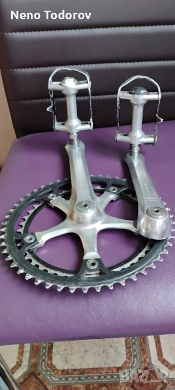 Ретро шосейни курбели GIPIEMME с дължина на рамото 170мм, 52/42 зъба,BCD 135., в комплект с педали GIPIEMME, плюс капачета за курбелите campagnolo