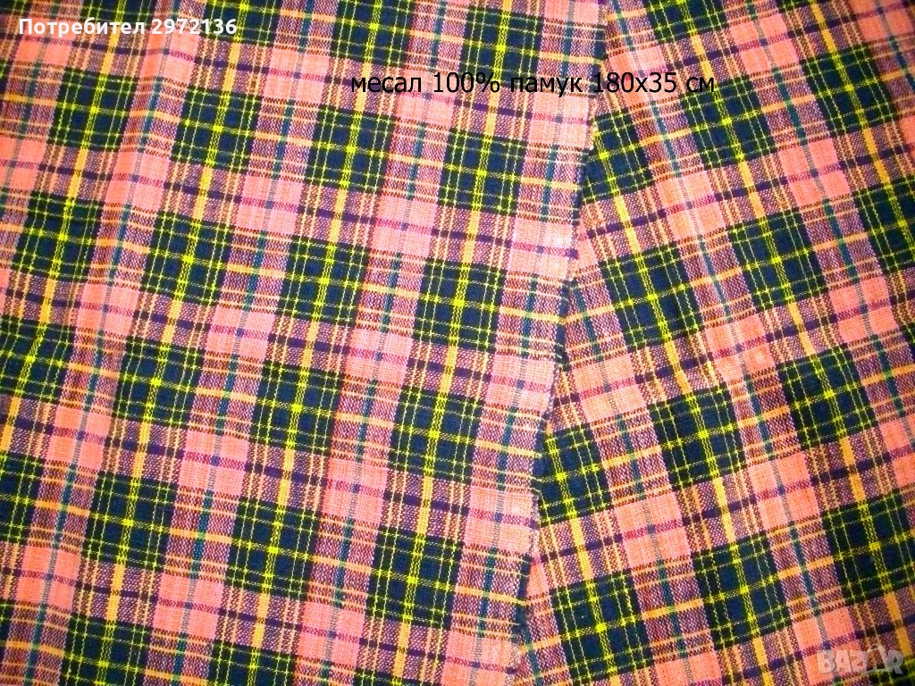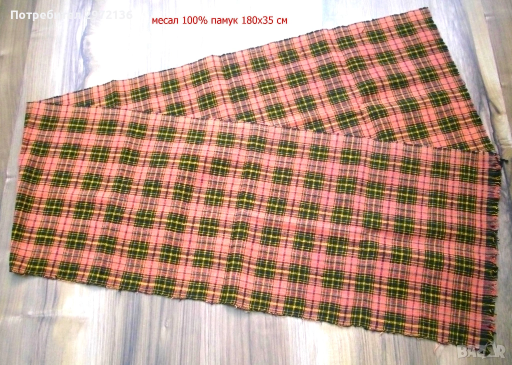 - месал кариран, 100% памук, 180х35 см, тегло 0.200 кг, цена 41 €; снимки 10 и 11;