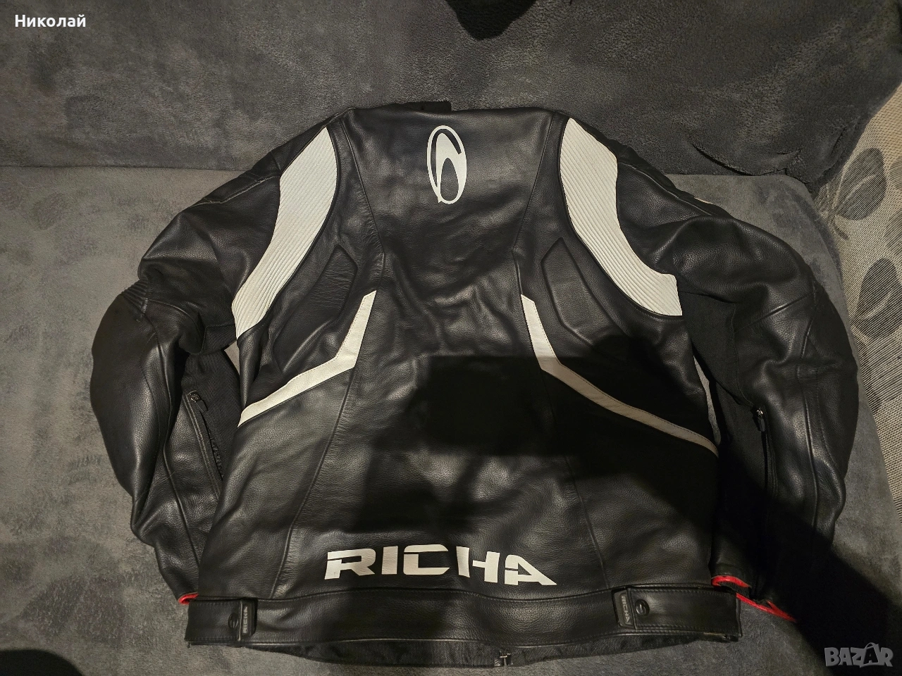 Продавам мото екип Richa от две части с протектори, в добро състояние. Единствено са се отлепили буквите на панталона. Якето е 52 номер Панталона е 42 номер Ботите са A-Pro Vortice 45 номер Може и поотделно, питайте. Само лично предаване в гр София или еконт след ПРЕВОД НА СУМАТА! Без наложени платежи! Благодаря!