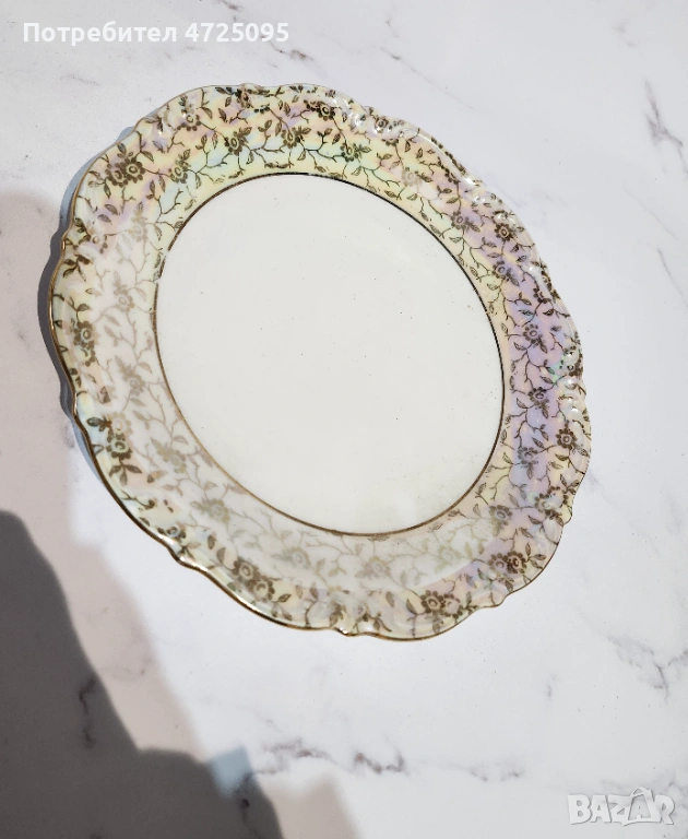 Троен порцеланов сет със седефено покритие. Винтидж