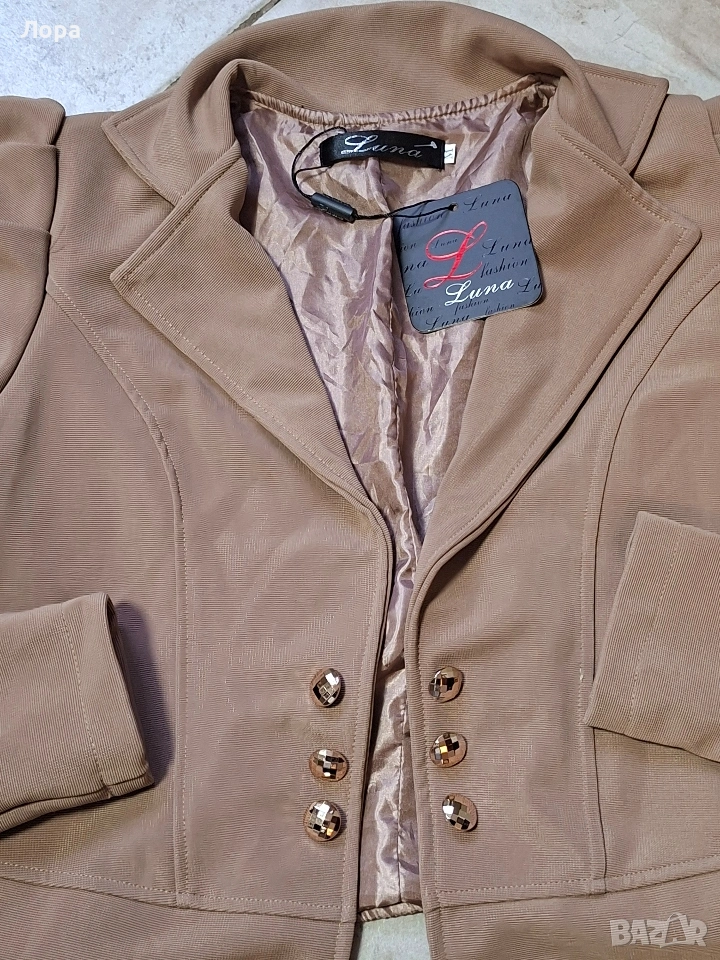 Дамски сет сако и клин. Гръдна обиколка на сакото едностранно 45 см. Сакото е ново клина е използван. Ширина в талията на клина от 40 до 65 см. Изпращам с опция преглед и тест по Еконт.