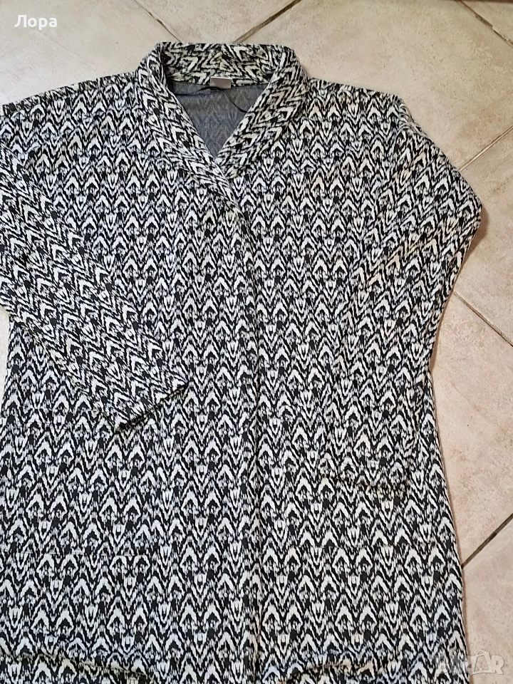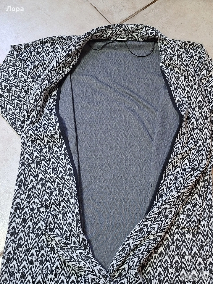 Дамски сет сако и кожен клин. Сакото е без подплата и закопчаване с два външни джоба. Размери ширина от мишница до мишница 55 см. Дължина 83 см. Има еластичност. Клина е имитация на кожа. В талията от 40 до 65 см едностранно. Нямат забележки. Изпращам с опция преглед и тест по Еконт.
